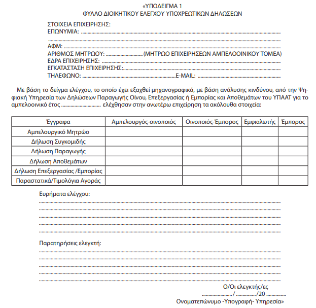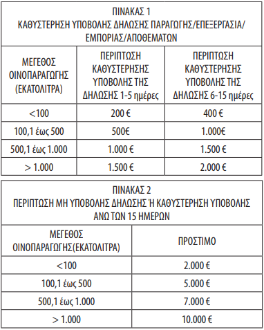 «1. Οι παραγωγοί οίνου, οι μεταποιητές, οι εμφιαλωτές και οι έμποροι που διατηρούν αποθέματα -εμφιαλωμένα ή μη- υποχρεούνται να υποβάλλουν κάθε χρόνο: