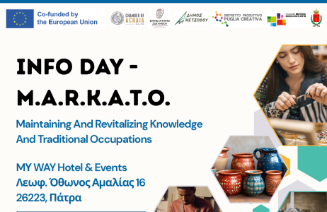 Προσκαλούμε επιχειρηματίες παραδοσιακών επαγγελμάτων, τεχνίτες, πολιτιστικούς φορείς, δημιουργικές επιχειρήσεις και πολίτες να συμμετάσχουν στην Ημερίδα Ενημέρωσης για την παρουσίαση του ευρωπαϊκού έργου M.A.R.K.A.T.O., που...
