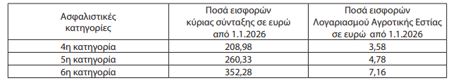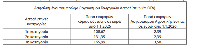 Ασφαλιστικές κατηγορίες και εισφορές ασφαλισμένων του πρώην Οργανισμού Γεωργικών Ασφαλίσεων (πρώην Ο.Γ.Α.) για κύρια σύνταξη και υπέρ του Λογαριασμού Αγροτικής Εστίας (Λ.Α.Ε.)