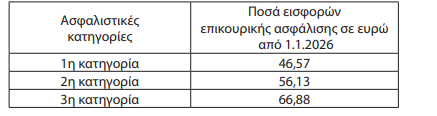 Ασφαλιστικές κατηγορίες και εισφορές κλάδου επικουρικής ασφάλισης