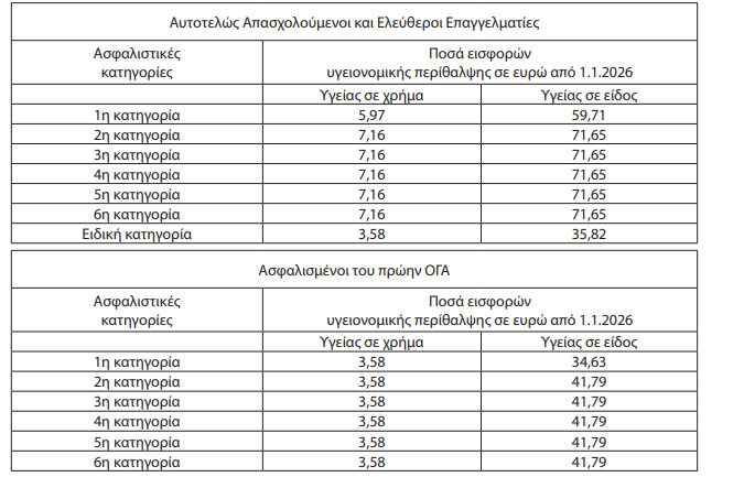 Ασφαλιστικές κατηγορίες και εισφορές για υγειονομική περίθαλψη (παροχές σε είδος και σε χρήμα)