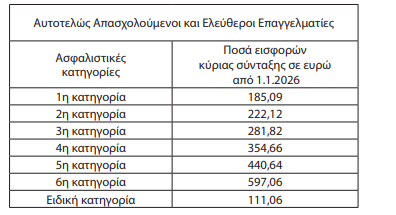 Ασφαλιστικές κατηγορίες και εισφορές αυτοτελώς απασχολουμένων και ελεύθερων επαγγελματιών για κύρια σύνταξη